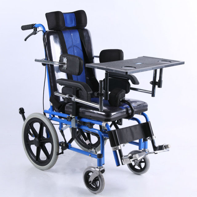 | 座椅座垫与地面后倾角度调节范围0-45度 轮椅配有刹车,防倾翻支架,可拆卸餐桌(板前后上下可调) | |